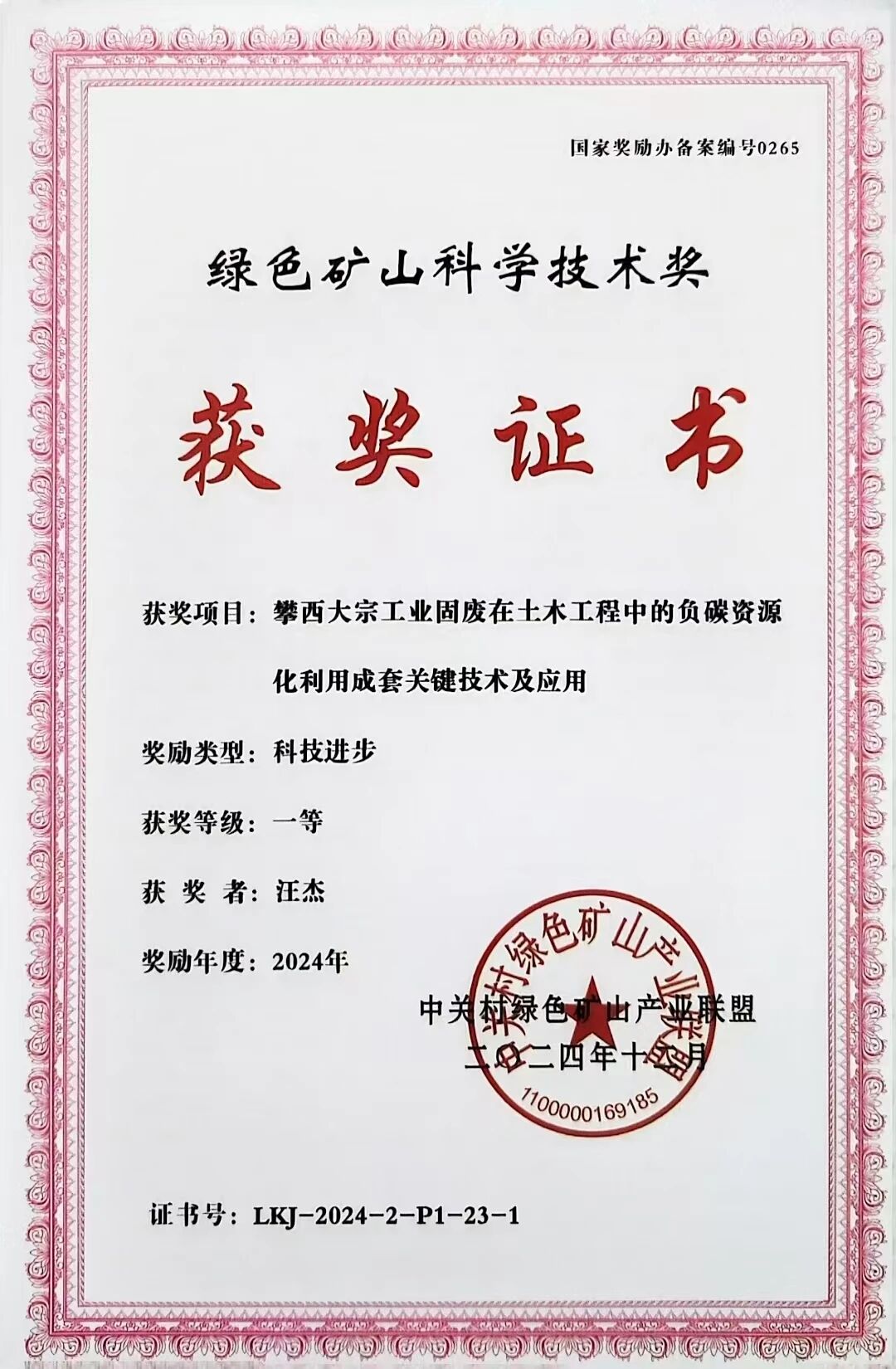 2025年1月,汪杰团队站在第八届绿色矿山科学技术奖颁奖典礼的舞台上领取“绿色矿山科技进步一等奖”。舞台上光影斑驳,如同银河里的点点星光在闪烁:高钛型高炉渣混凝土回弹法地区测强曲线、高钛型高炉渣碳化深度研究、电炉钢渣性能研究、高钛重矿渣再生混凝土……在时代对可持续发展的深切呼唤中,汪杰团队在资源循环利用与绿色发展领域的每一项突破都如同熠熠星辰,照亮着可持续发展的道路。