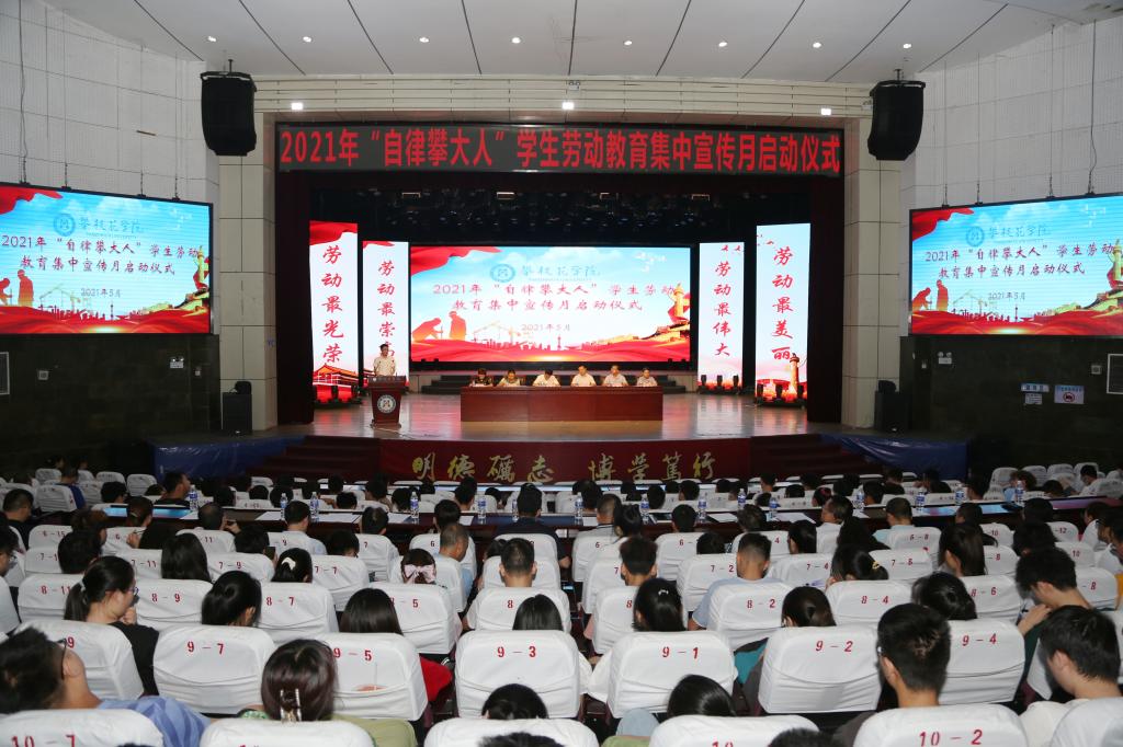 5月19日下午,我校在会堂举行2021年“自律攀大人”学生劳动教育集中宣传月启动仪式。党委书记王斌出席并讲话,学生工作部、宣传部、教务处、后勤管理处、团委负责人,各二级学院分管学生工作领导、学生科科长、全体辅导员以及各班班长参加仪式。