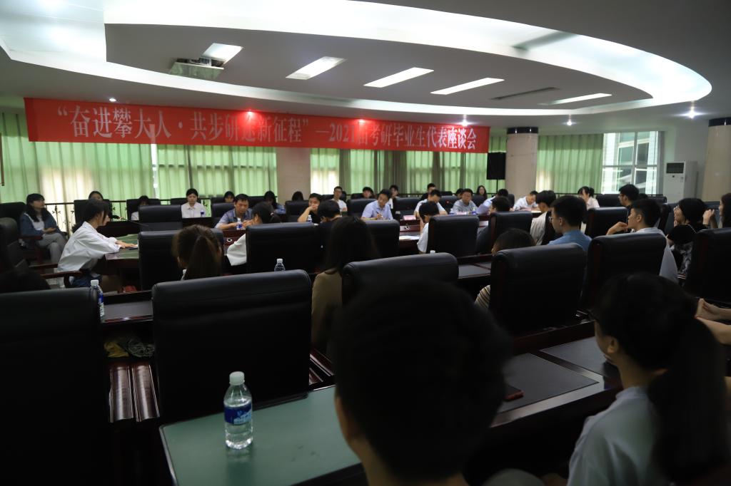6月9日上午,“奋进攀大人·共步研途新征程”——2021届考研毕业生代表座谈会在办公楼四楼会议室举行,学校党委书记王斌、学生工作部、教务处、科研处、后勤管理处、图书馆负责人,各二级学院、校级学生组织考研毕业生代表共计53名同学参加了本次座谈会。