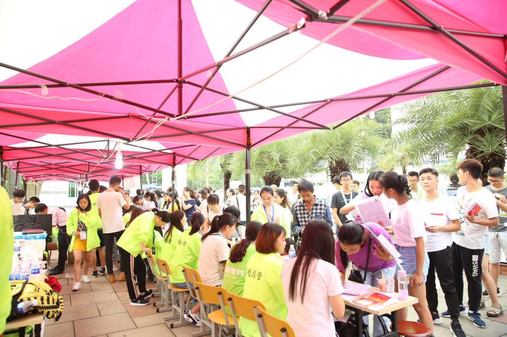 在迎新工作中,有这样一支队伍,他们的名字叫做迎新志愿者,他们忙碌的背影总是一抹亮丽的风景。今年学校组织征集了350余名志愿者,二级学院组织和自发前来的志愿者更无可计数。学校志愿者分工明确,在经过集中培训之后,以校内接待组、宣传报道组、校内督查组展开工作。雨夜火车站、烈日海藻路,长长香樟道,会堂休憩室,有新生的地方,就有志愿者的身影。迎新期间,白天烈日高温,夜里暴雨频发,但只要新生到站,志愿者全然不顾天气状况,帮助搬运行李,引导新生前往会堂临时休息。志愿者在各服务点,协助二级学院迎新,提供各种服务,介绍学校情况,将志愿服务精神融入到每一个举手之劳中,为学校迎新接待缓解了压力,为每位新生及家长送出了温暖。