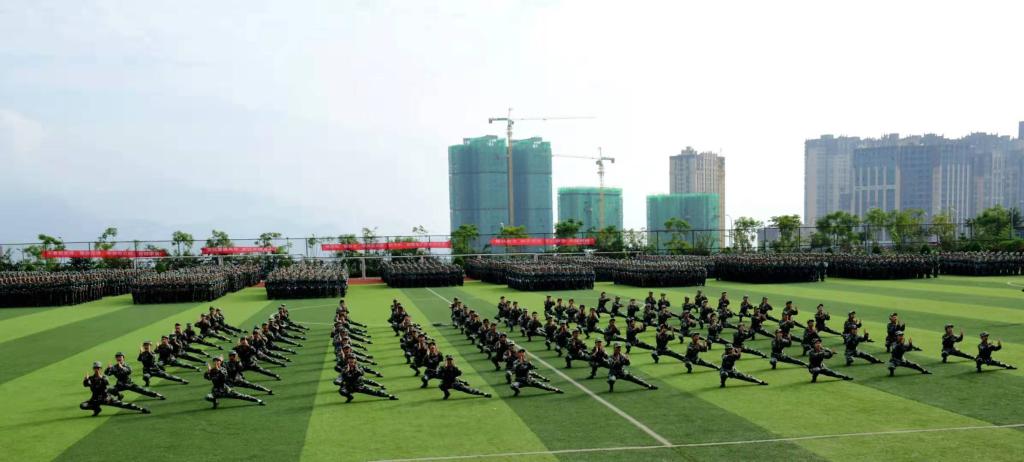 大会在庄严的国歌声中拉开帷幕。王曙光宣布军训汇报表演开始,全体参会人员起立奏唱国歌,共同见证这一庄严的时刻。参会师生一道共同观看了新生的分列式、搏击操、手形操、体操、体能、匕首操以及校园防暴方队的汇报表演。