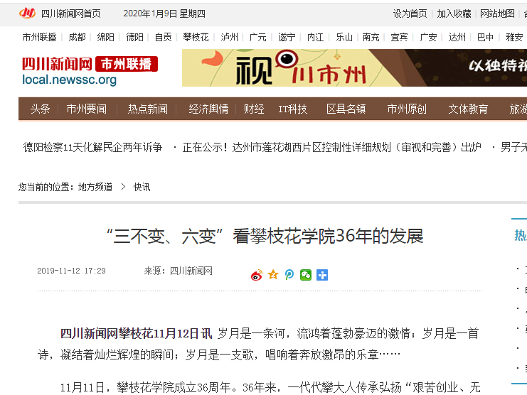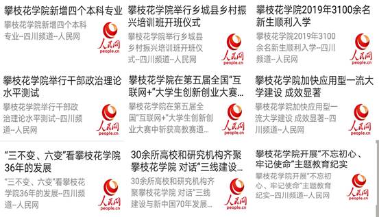 发展才是硬道理,讲好学校发展故事是宣传工作的"重中之重"。一年来,我们聚焦主题教育,讲好攀大人坚守教育报国初心、勇担立德树人使命的故事;聚焦“中兴班”、“华为班”、“金蝶班”,讲好产教融合的故事;聚焦连续三年位列《广州日报应用大学排行榜》全国100强,讲好应用为先的故事;聚焦高质量通过本科教学审核评估工作回访,讲好加快应用型一流大学建设的故事;聚焦全国“互联网+”喜获银奖,讲好人才培养的故事。今年是新中国成立70周年,也是学校建校36周年,在 "三十六载再出发"的特别报道中,我们推出了《从“三不变、六变”看攀枝花学院三十六年的发展》、《三十六载再出发,与国同行新时代》等一系列专题报道,联合艺术学院拍摄了第一部动漫作品,全方位、多角度、立体化展示了办学36年的丰硕成果。评论中有人这样说到:“如今的攀大是不断奋进着的攀大,是不断发展的攀大,他的发展日新月异,他的变化显而易见,他的成效硕果累累”。