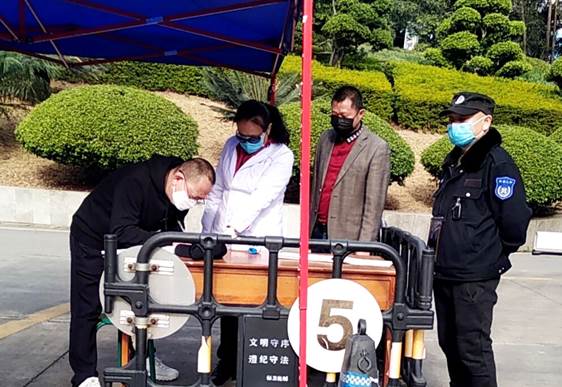 肖立军来到学校南苑东门值班点,代表学校对值班人员表示慰问,对他们的辛勤付出表示感谢,关切提醒值班人员要做好个人防护。肖书记了解了近期出入口管理情况,并主动登记并接受检查。