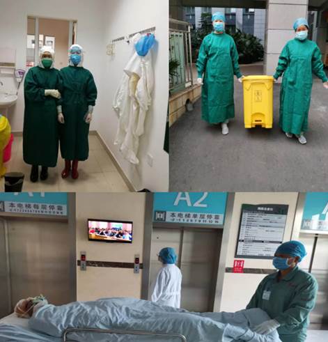 在疫情发生后,作为配送中心班组长,她立即投入到发热门诊陪检、收感染医用织物、危重病人推送等工作第一线。在得知医院防护服不合身的情况后,她立即组织会缝纫的科室员工,修改医院库存的四百套防护服。一人裁剪,一人缝纫,科室员工齐心协力,加班加点,中午不休息,晚上加班到十一、二点,其它人员一有空就配合修改,每天能修改完成三、四十套防护服,基本满足了一线人员对防护服的需求。另外,由于医院一次性帽子、口罩等物资紧缺,配送中心集体发挥创新精神,自给自足,用无纺布自制帽子、口罩和口罩内层垫垫巾(高压消毒),一定程度缓解了防疫一线工作人员需求。