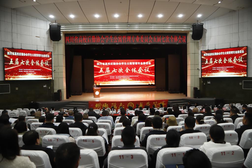 1127日,由四川省后勤协会学生公寓管理专业委员会主办,我校与西南石油大学联合协办的四川省高校后勤协会学生公寓管理专业委员会五届七次全体会议在我校阳光会堂召开。四川省学校基本建设与后勤产业中心高校后勤产业科副科长李鹏举,四川省高校后勤协会会长李树勇、秘书长高庆,四川省高校后勤协会学生公寓管理专业委员会主任余辉,四川省高校后勤协会有关领导与负责人,四川省寓专会五届理事会全体成员,以及各会员学校代表160余人参会。副校长朱云生出席会议并致辞。