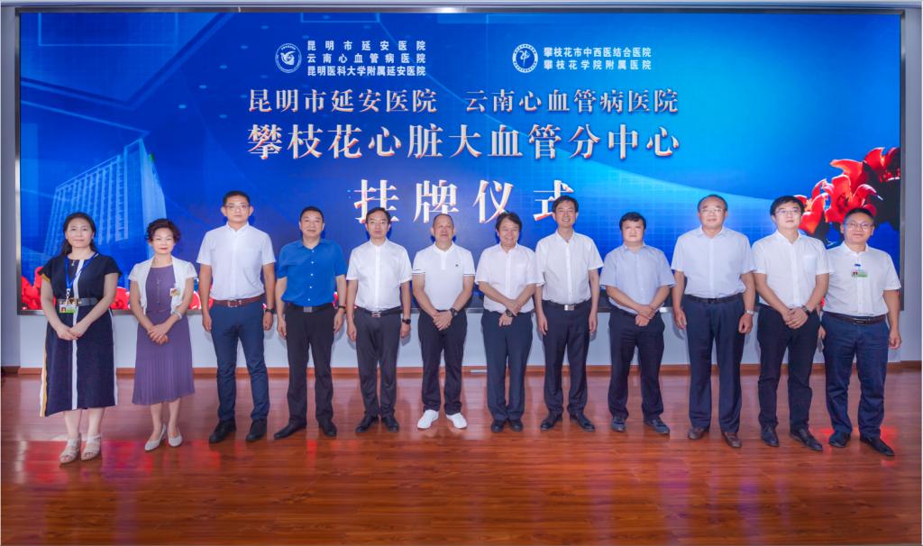 7月4日,附属医院在多功能报告厅举行昆明市延安医院、云南心血管病医院攀枝花心脏大血管分中心挂牌仪式。校党委书记肖立军,校党委副书记胥刚,昆明市延安医院常务副院长李汝红、副院长王文举,云南心血管病医院副院长、昆明市延安医院心脏大血管外科主任李亚雄,攀枝花市卫健委副主任张福鑫出席仪式,附属医院领导班子成员,相关科室主任及医院医联体、科联盟单位相关负责人参加仪式。仪式由医院党委负责人主持。