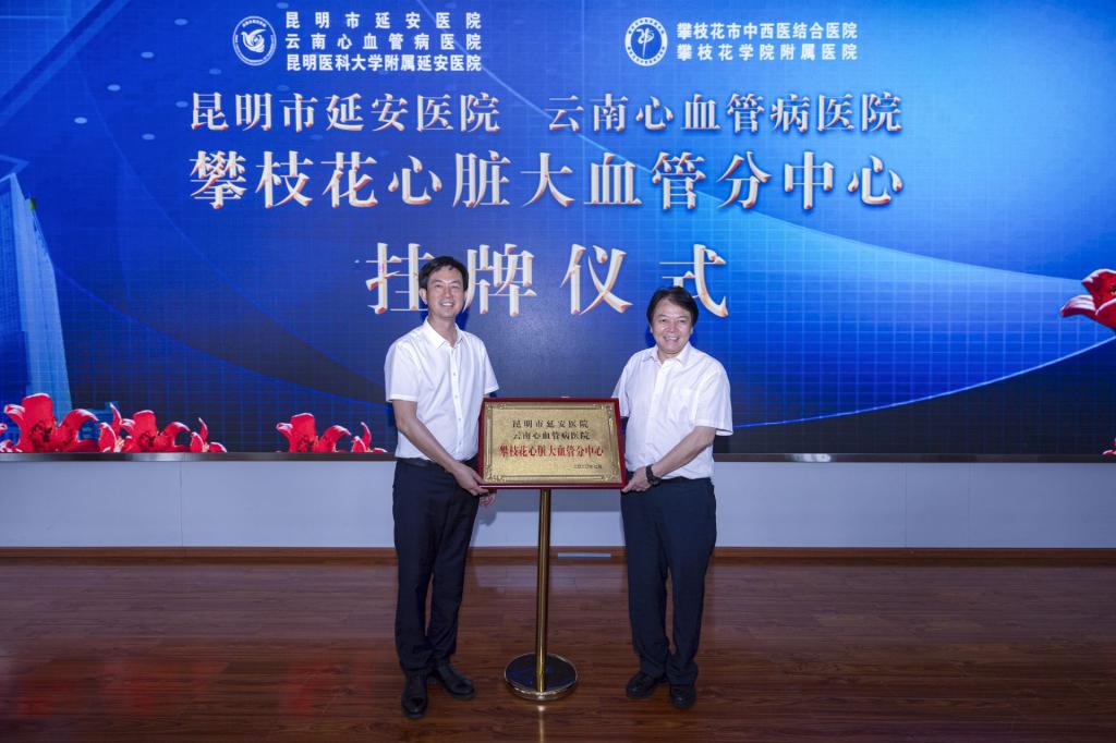 昆明市延安医院院长谭晶、附属医院院长田巨龙为分中心揭牌。