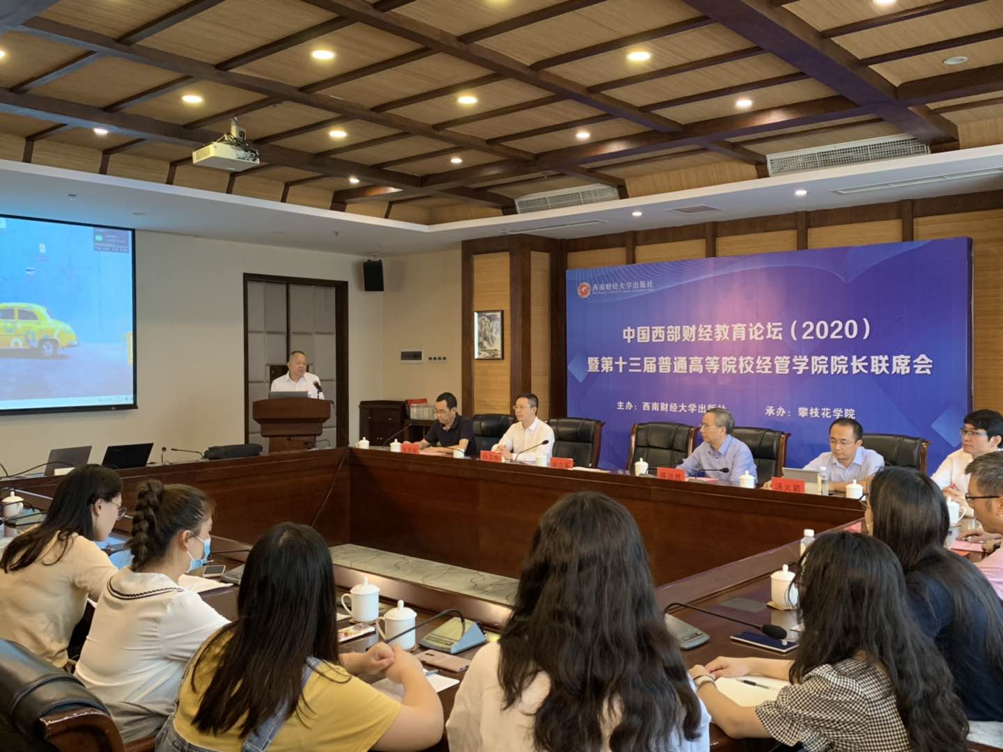 2020年8月20日上午,由西南财经大学出版社主办、攀枝花学院承办的中国西部财经教育论坛(2020)暨第十三届普通高等院校经管学院院长联席会顺利召开。本次论坛采用线上与线下相结合的方式,围绕“加强课程思政、深化产教融合,推进一流经管人才培养”的主题展开,四十余所本科院校近百位经管学院院长、教务处处长以及专业建设负责人线上和线下参会。