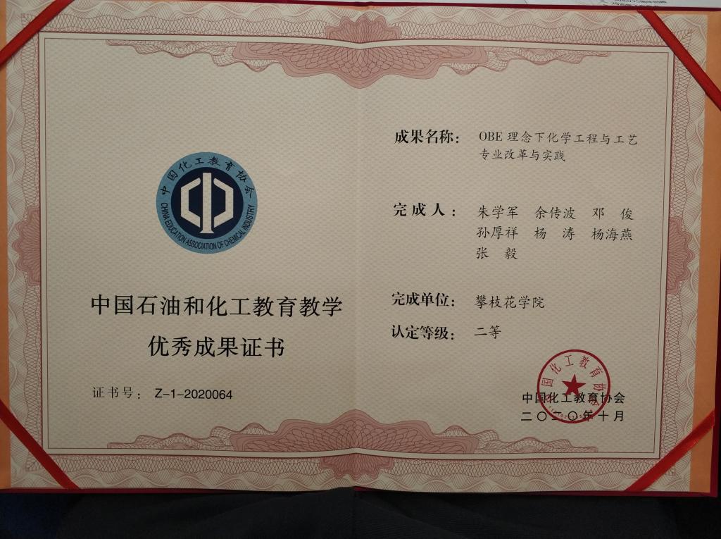 10月30日,中国化工教育协会主办的2020中国化工教育年会(EduChem2020)在湖南省长沙市召开,现场颁发了第五届中国石油和化工教育教学优秀成果奖,我校生化学院朱学军教授主持的《OBE理念下化学工程与工艺专业改革与实践》荣获二等奖。