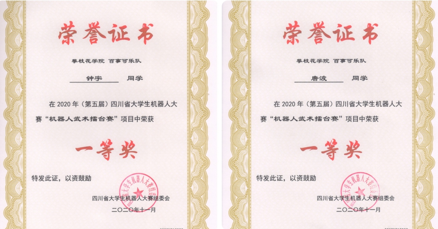 我校智能制造学院选送的3支参赛队参加机器人擂台、机器车循迹、机器人攻击气球三个项目比赛。其中,“百事可乐”队(18级电子唐波、18级自动化方皓楠、钟宇、李浪)荣获机器人擂台项目一等奖(冠军),“追梦队”获得机器车循迹项目三等奖好成绩。