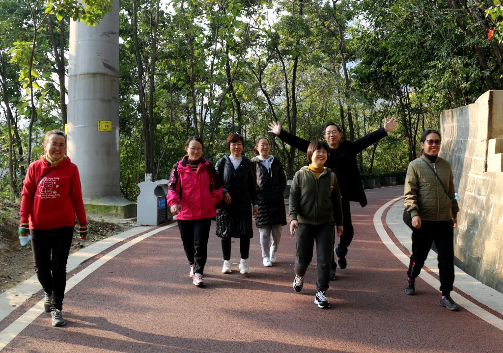 大家呼吸着清新的空气,面不喘,气不虚,迈着矫健的步伐,交流着各自工作、生活情况,一路上欢声笑语不断。