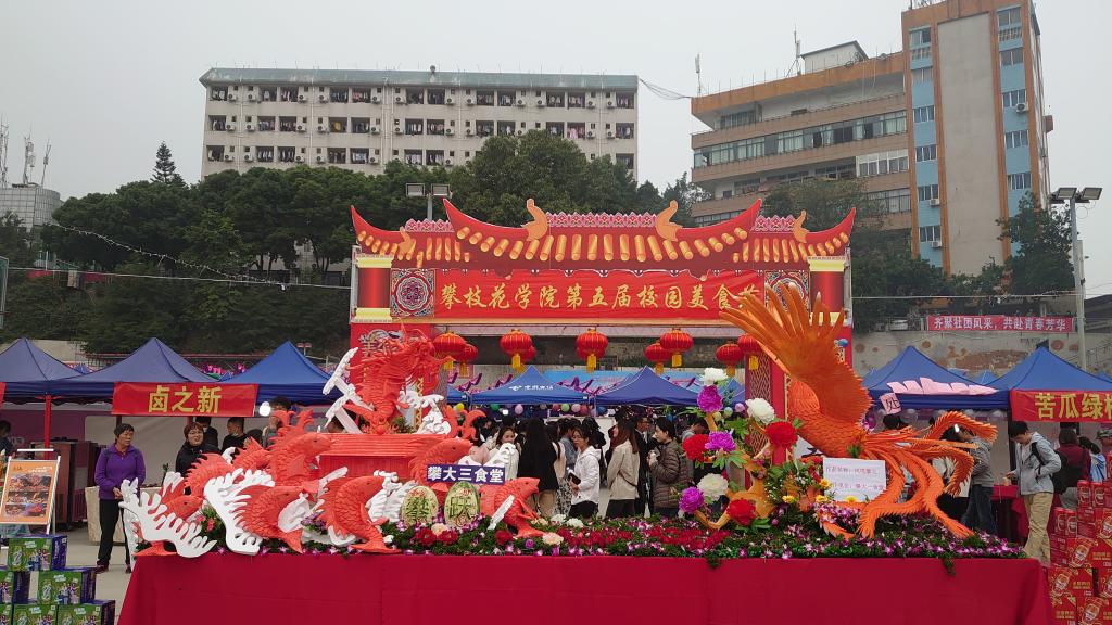 学校积极主动联系攀枝花市卫生、市场监管等业务部门,强化对学校食堂的规范管理。做好食堂基础设施建设,确保各食堂达到明厨亮灶的基本要求。通过监督大宗物资采购,定期开展对原材料进货台账记录的检查等方式,建立健全了可追溯源头的食品安全保障体系。推进食堂量化分级管理和“灭C”行动计划,投入100余万元,改善食堂的就餐和操作环境。“灭C”行动成效显著,学校所有食堂均达到B级以上,其中学生三食堂达到A级。自2016年第一届校园美食节成功举办以来,美食节便成了师生员工们翘首以盼的盛大节日。