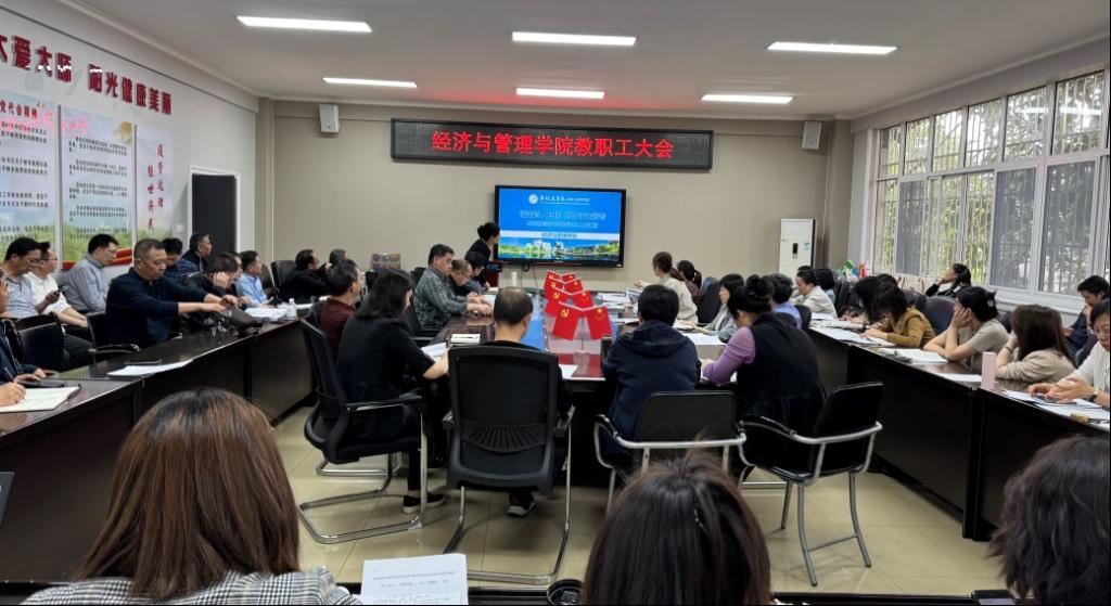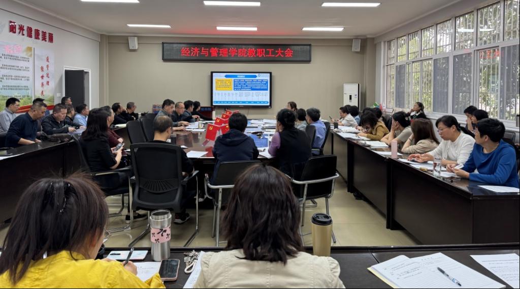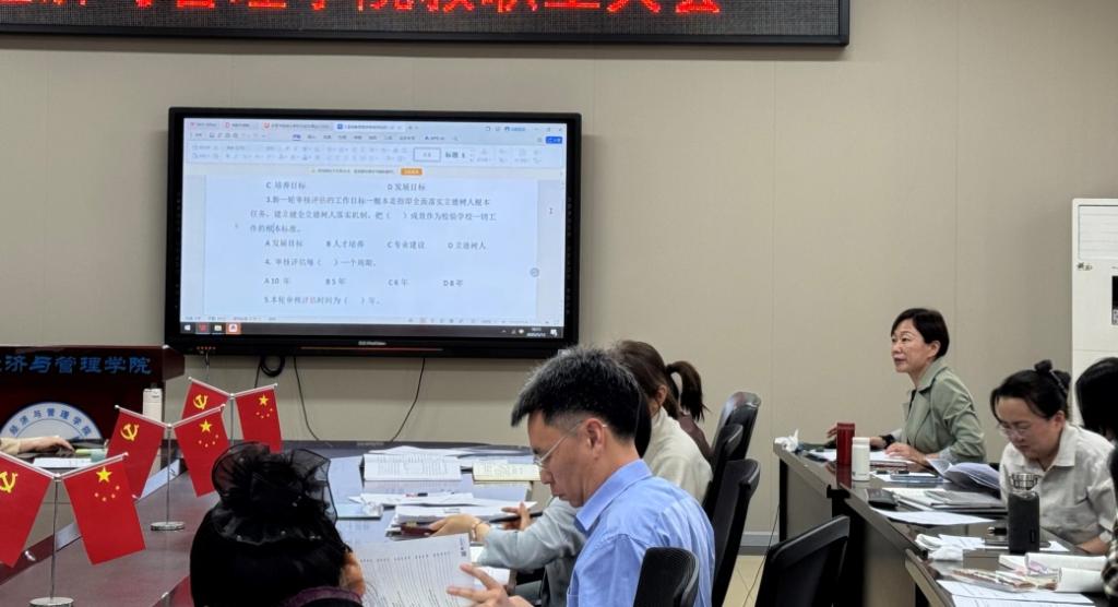 为全面落实本科教育教学审核评估工作要求,3月12日,经济与管理学院召开专题学习会,组织全体教职工集中学习本科教育教学审核评估相关知识。学院党委书记陶睿主持会议。