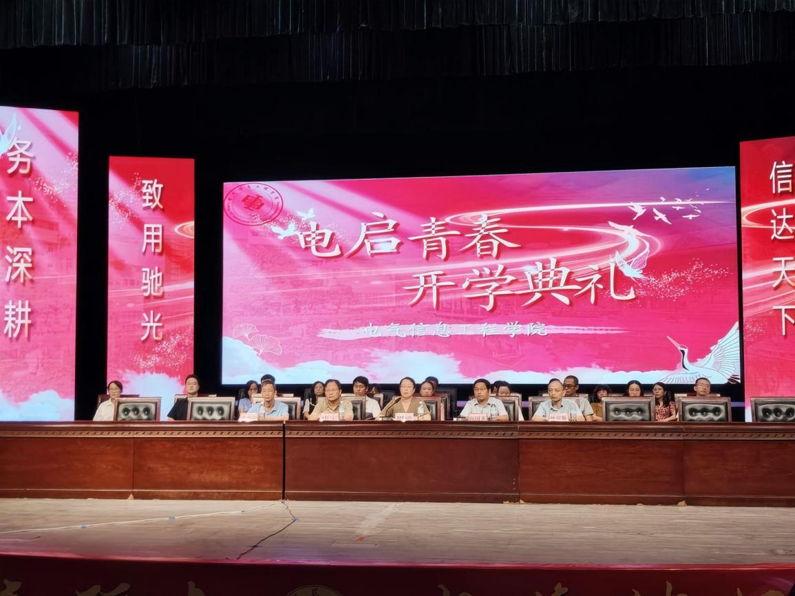 9月11日晚,电气信息工程学院2025级开学典礼暨新生见面会在我校阳光会堂举行。学院党政领导班子成员、各科室负责人、教研室主任、新生辅导员、班主任以及2025级全体新生共同参会,典礼由学院党委书记周敏主持。