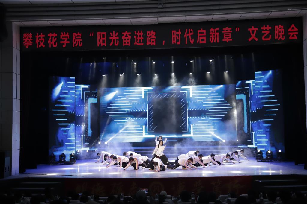 本篇章着眼于未来,表达了全体师生在新征程上勇担使命、开创未来的坚定决心。赵娜老师带来的女声独唱《领航》,用高亢嘹亮的歌声赞颂了伟大的时代,唱出了引领前行的磅礴力量;街舞《炽焰》以充满爆发力的表演,象征着青年一代蓄势待发的激情与能量;配乐诗朗诵《阳光花城·英雄颂歌》深情讴歌了攀枝花这座英雄城市及其人民,抒发了继往开来的豪情壮志;古典舞《我的祖国》用柔美而有力的舞姿,表达了莘莘学子对祖国最深切的爱恋与祝福。