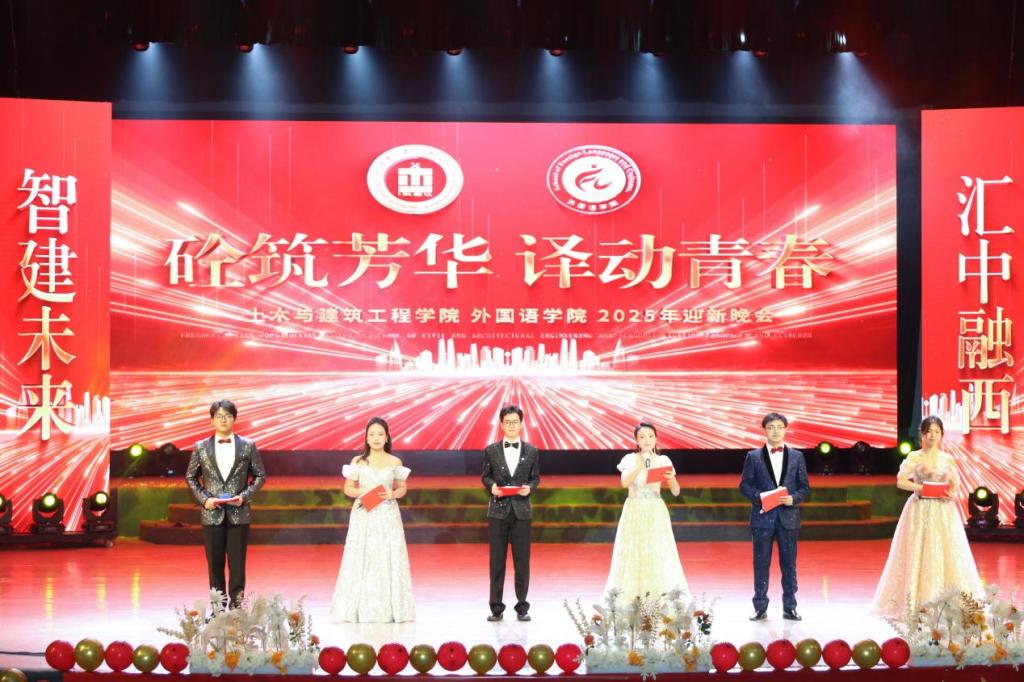 12月14日晚,外国语学院与土木与建筑工程学院于阳光会堂联合举办2025年迎新晚会。本次晚会以“砼筑芳华 译动青春”为主题,是学校首次两院联办迎新活动,800余名师生齐聚一堂,共同见证这场青春盛宴。