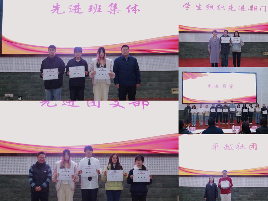 颁奖环节分为两个篇章进行。第一篇章以“齐心协力,聚力以行”为主题,集中颁发先进班集体、先进团支部、学生组织先进部门、先进寝室、卓越社团等集体荣誉奖项。